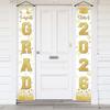 [Versatile Use]: Our green and gold congratulations graduation porch sign banner class of 2026 can be hung in various locations, from classrooms, balconies, porches, bars, front door, wall, to dessert table, indoors or outdoors, or any other visible spot to create festive vibe. It's not just a graduation door decorations