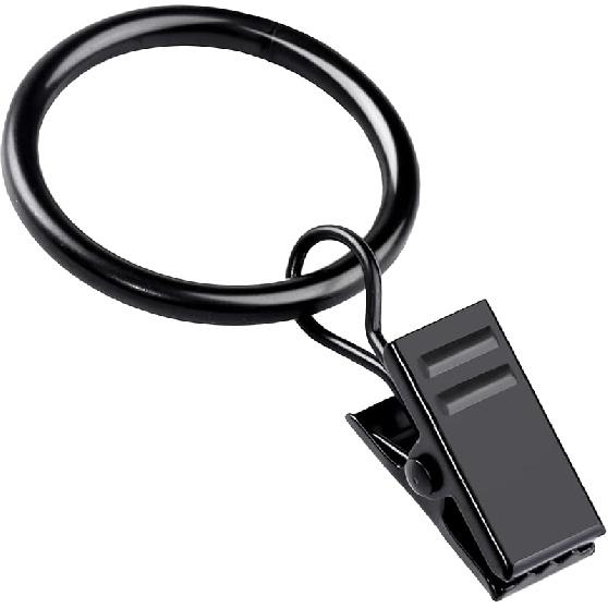 Teenitor 20 Pack Black Curtain Rings with Clips, Curtain Hooks Curtain Clips with Rings, Drapes Rings 1 Inch in Diameter, Fits up to 5/8" Curtain Rod