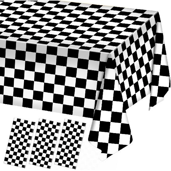 Oigco 3 Pack Black and White Checkered Tablecloths Race Car Theme Tablecloths for Motor Racing Birthday Party Decorations, 54" x 108