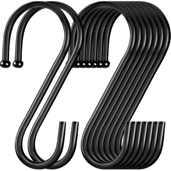 24 Pack S Hooks, 3.5 Inch Heavy Duty S Hooks for Hanging Plant, Large Closet Rod Hooks for Jeans Bags, Black Metal S Shaped Hook for Plant Basket,