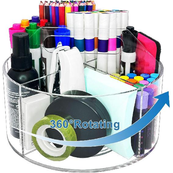 【Multipurpose Desktop Organizer】This transparent rotating desktop organizer is suitable for schools, office desktops, classroom podiums, art studios, homes, bathroom vanities, bedrooms, living rooms, kitchens, and any other places that require it.