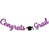 Pre-Strung Congrats Grad Banner - Black Glitter Graduation Party Banner with Cap, Congratulations Graduate Decor, High School College Graduation