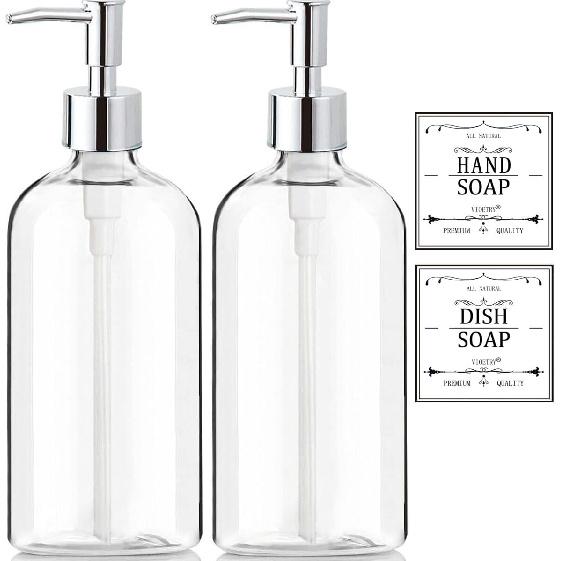 【Elegant Bathroom Soap Dispenser with Waterproof Labels】: Stylish gorgeous looking hand soap dispenser, functional and aesthetically pleasing. This soap dispenser features easy pressing, durable and practical, Use this as Kitchen Soap Dispenser Or Fill It With Lotion as a Farmhouse Style and Practical Bathroom Decor. Beautiful accessory of your home, make your house neat, organized and stylish. Two elegant high-end labels included, Hand Soap, Dish Soap, durable and waterproof for daily use.