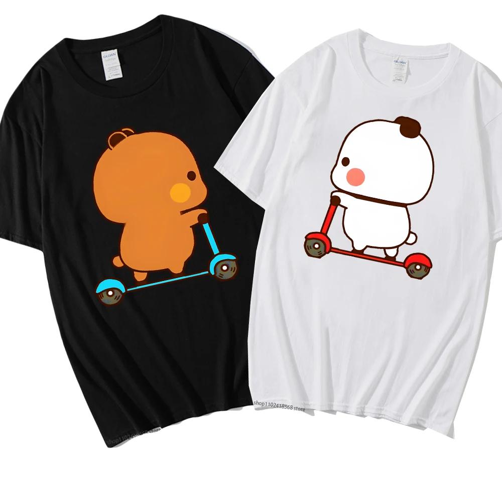 Cute Couple Shirt Cute Bubu and Dudu Are Playing Scooter Together Graphic T-Shirts Men's Clothes Panda Bear Cotton Top