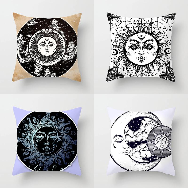 Home Decor Sun & Moon Themed Cosmic Throw Pillow Covers Pattern Cushion Cover Suitable For Sofa Bedroom Car Pillow Cover