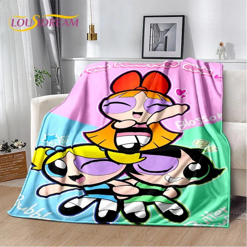 Kreskówkowy Słodki P-Powerpuff Girl Miękki Koc Flanelowy na Łóżka Sypialnia Sofa Piknik, Koc Narzuta do Przykrycia na Zewnątrz Rekreacja Drzemka Prezent