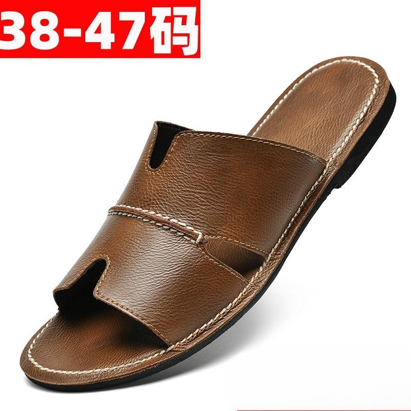 Slippers for Men Fashion Casual Sport Slippers High Quality Cowhide Leather Slipper Summer Open Toe Beach Slippers Large Size47