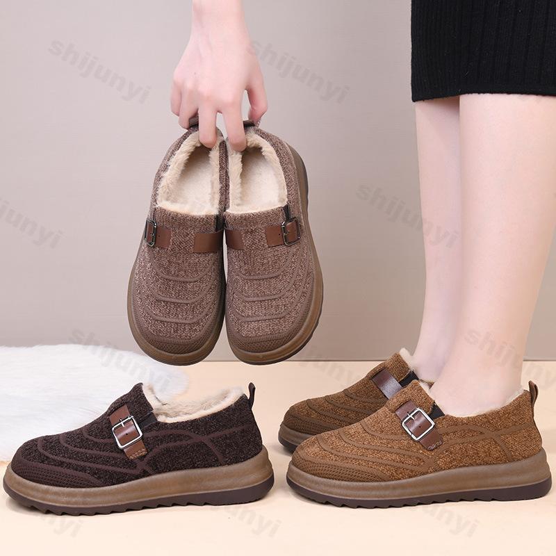 Women's Cotton Shoes Winter New Outdoor Non Slip Comfortable Platform Casual Shoes Fashion Buckle Strap Vintage Plush Warm Shoes