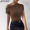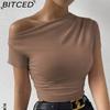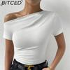 BITCED Spring/Summer Women's Slim-Fit Pleated Asymmetric Hem Short-Sleeved T-Shirt Top