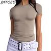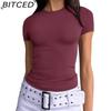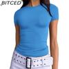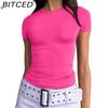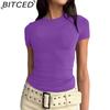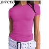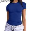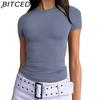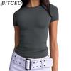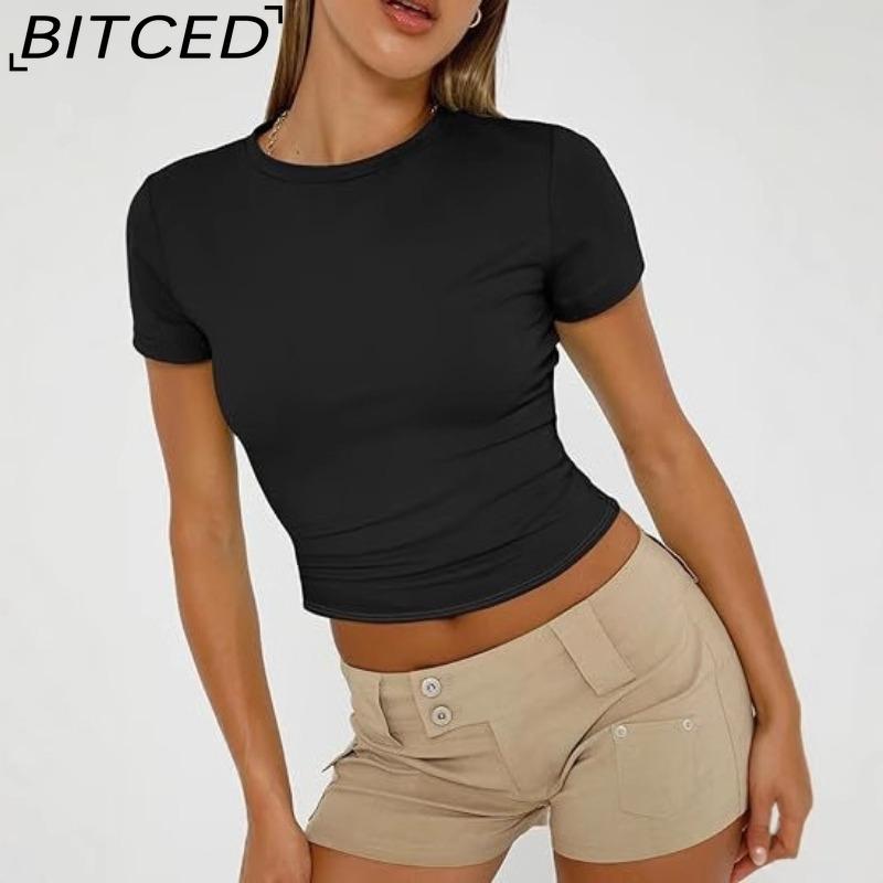 BITCED Damska koszulka z długim rękawem na lato: Stylowe topy z dekoltem O, dopasowane, do noszenia jako warstwa zewnętrzna