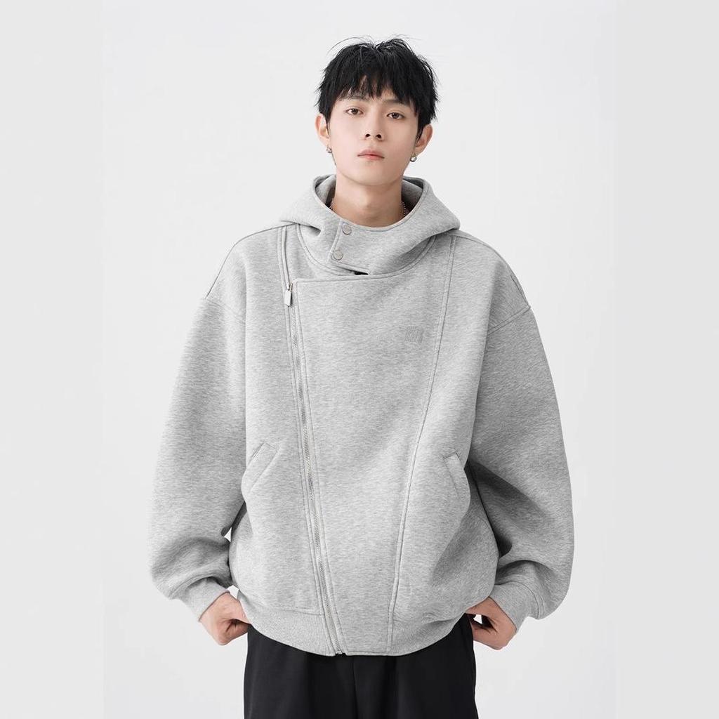 Męski szary kardigan z kapturem: Jesienny nieregularny design, styl uliczny, luźny krój.