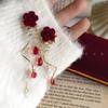 Autumn and winter new red velvet rose earrings retro fringed stud earrings niche design high-end New Year's earrings women