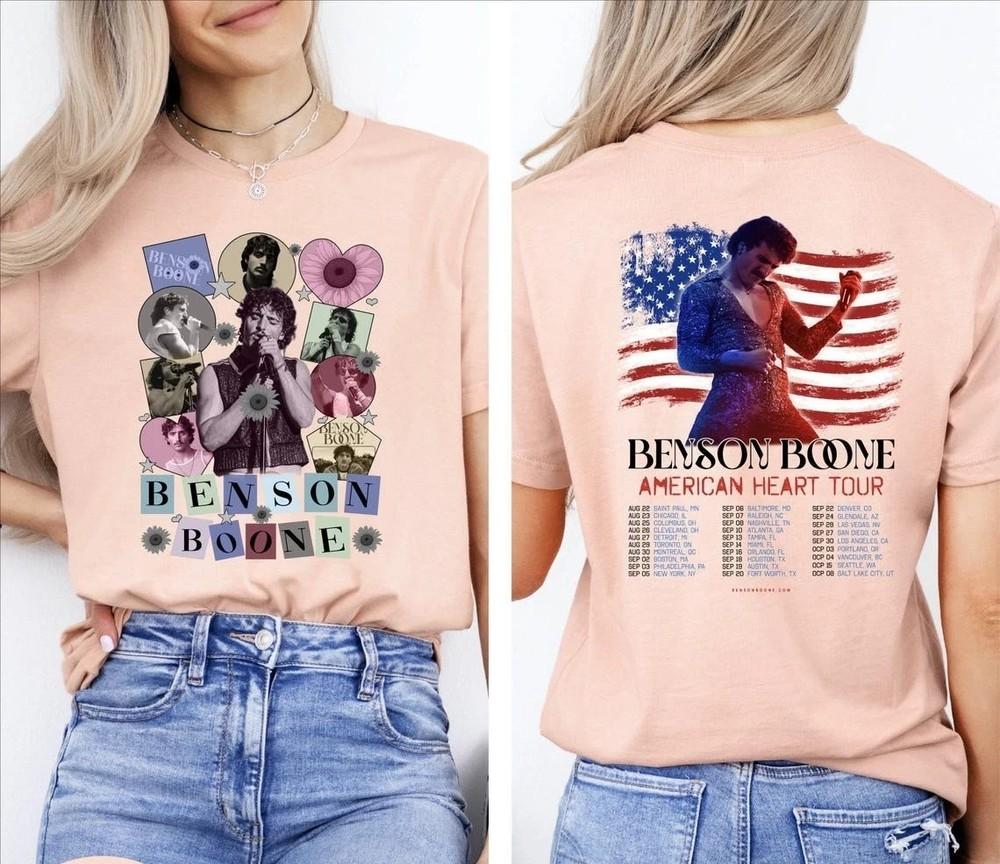 Benson Boone American Heart Koszulka z datą trasy 2025, Koszulka unisex w stylu vintage z koncertu