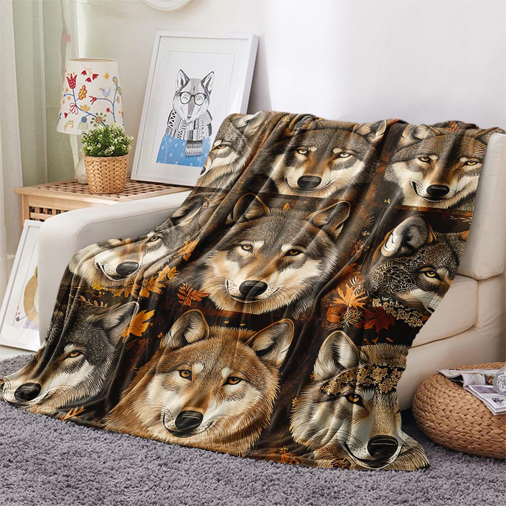 Koc Flanelowy z Nadrukiem Wilka, Wysokiej Jakości, Wygodny na Wszystkie Pory Roku, Wystrój Domu, Ciepło i Komfort, Idealny na Prezenty Świąteczne