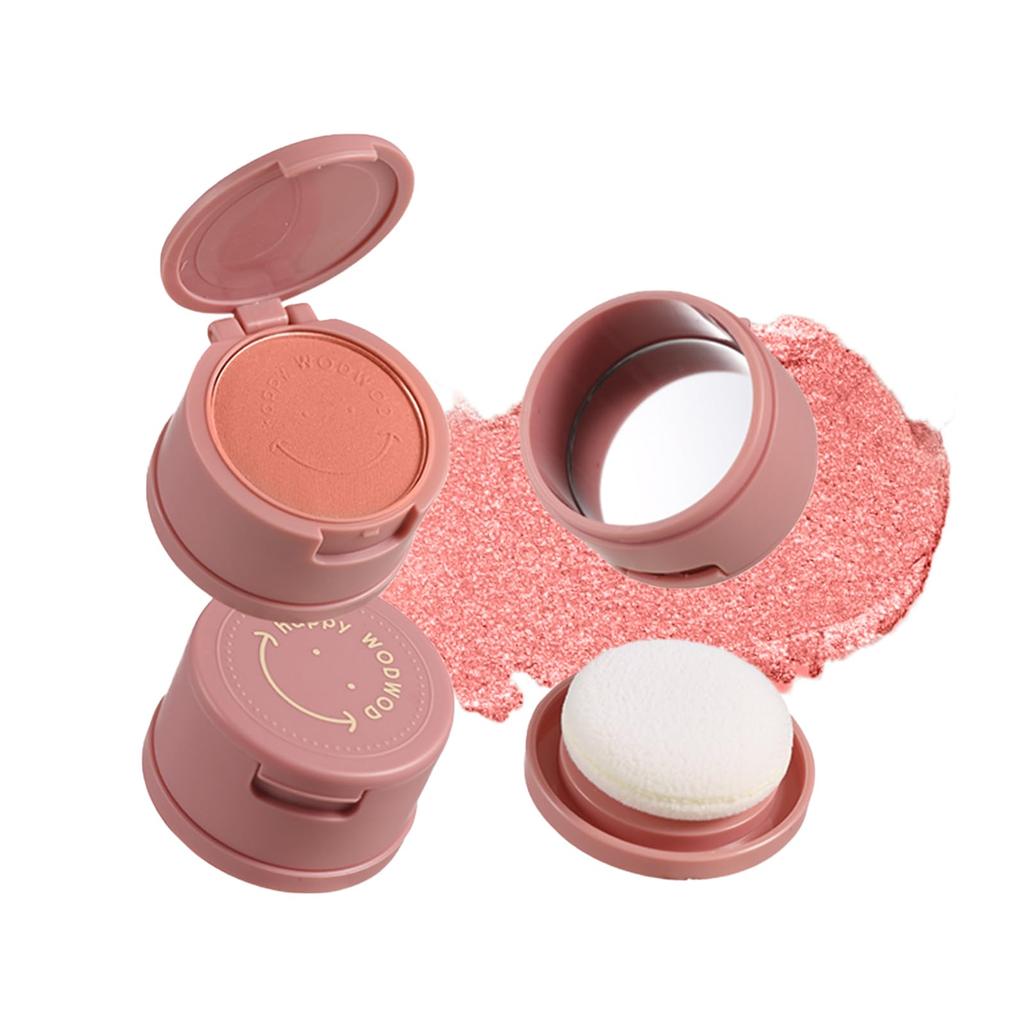 Wirwody Cheek Powder with Mirror and Natural Cheek Enhances Soft Conceals Suitable for Suitable for All Skin 4 Shades Coral Puff, 3-in-1 Powder,