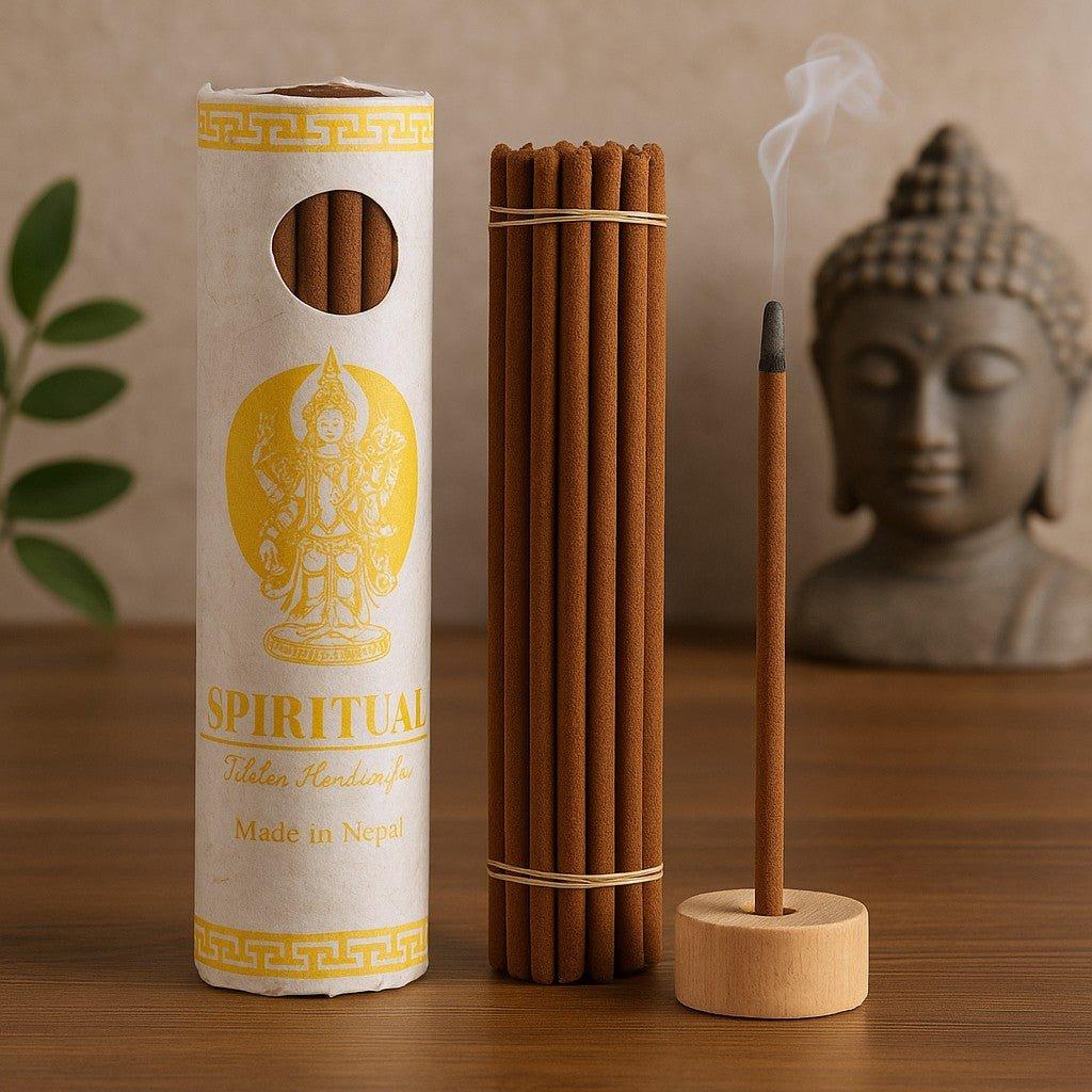 🏔️ The scent unfolds in layers: a fresh, green opening with hints of mountain herbs; a warm heart of dry woods; and a softly resinous, earthy finish touched by mild spice. Hand-rolled in Nepal with natural botanicals, these sticks follow Tibetan incense craft, valued for daily offerings and moments of contemplation. In Tibetan and Himalayan traditions, incense serves as a simple gesture of respect and a reminder of compassion, mindfulness, and presence—kept on home altars or lit to mark a reflective pause.