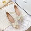 New Women Leather Flat Shoes Beautiful Pearl Bowknot Casual Boat Shoes Fashion Slip-on Loafers