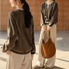 Extra-large Size Soft and Fluffy Textured Striped Long-sleeved T-shirt for Women in Autumn