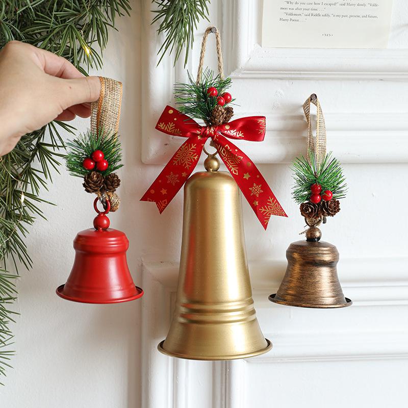 Christmas Bell Golden Metal Indoor And Outdoor Blessing Bells Pendant Snowflake Red Bow For Party Christmas Tree Decoration