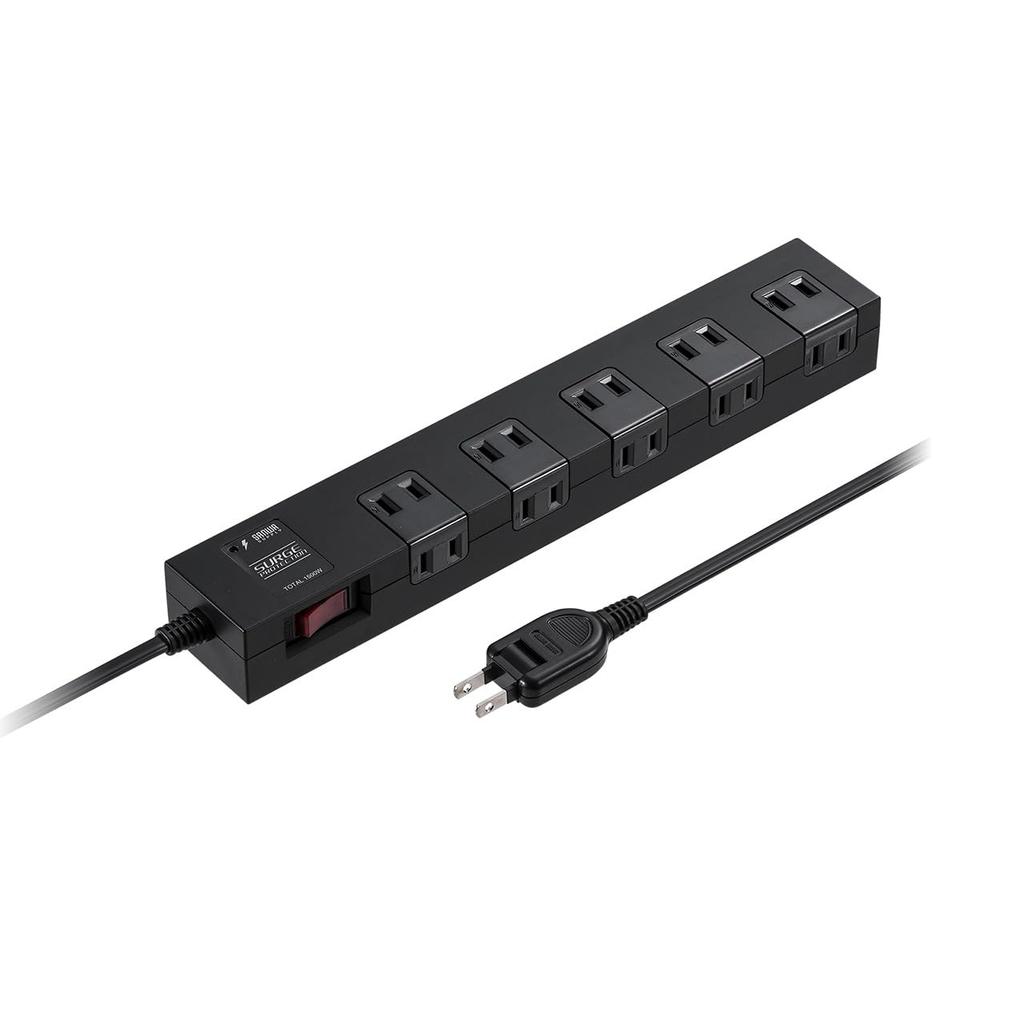 Sanwa Direct Power Strip, 10 Outlets, 2m, Lightning Guard, Magnetic, with Group Switch, Black, 700-TAP044BK