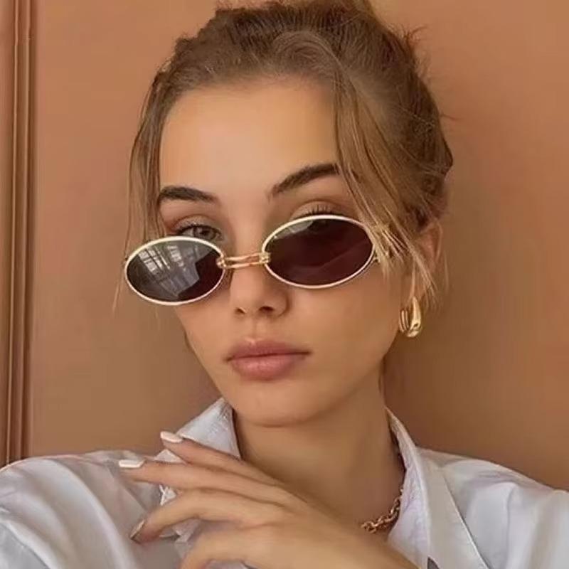 Retro Metal Oval Sunglasses Street Style Bicycle Riding Fashion Outdoor Sunscreen Cross-Border Eyewear Unisex Accessories