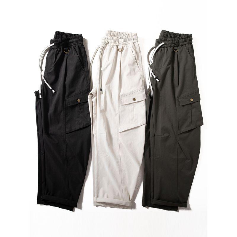 Men's Cargo Pants Spring and Autumn New Trendy American High Street Style with Large Pockets, Unique Design, Loose Casual Wide-Leg Pants