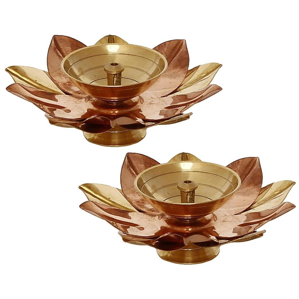 Dekoracyjna mosiężna diya w kształcie złotego kwiatu lotosu na Diwali Pooja (2, Złoty Kwiat Lotosu)