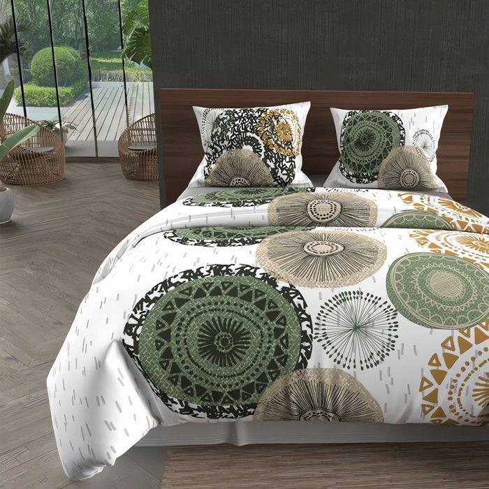Parure housse de couette en coton 57 fils 240x220 cm MASSAI blanc, par Soleil d'Ocre