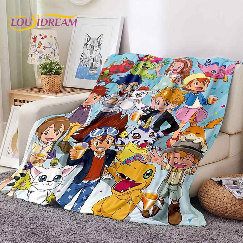 Retro Digimon Adventure Potwór Kreskówka Miękki Koc Flanelowy, Koc do Rzucania Wygodny Koc na Piknik Łóżka Kanapę Domowy Sypialnia