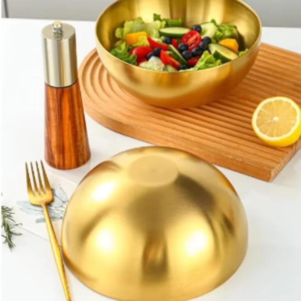 304 Stainless Steel Fruit Salad Bowl Korean Silver Gold Soup Rice Noodle Bowl Multifunctional Large Capacity Food Container