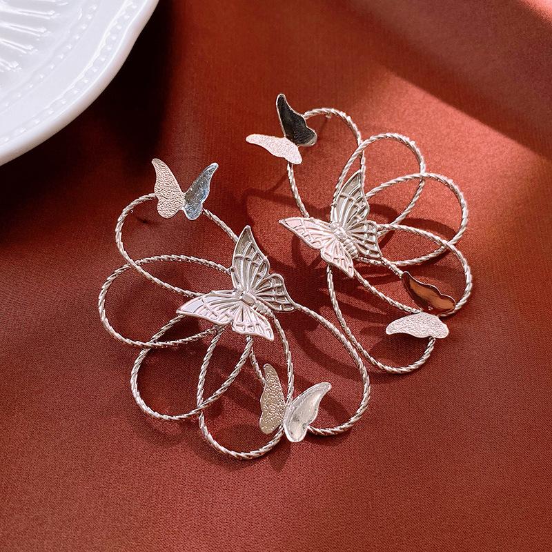 Metallic line flower butterfly silver needle stud earrings temperament geometric earrings