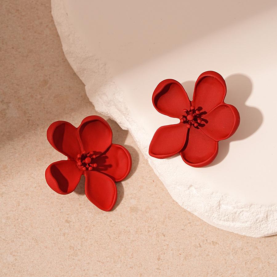 Painted flower petals silver needle stud earrings fashionable sweet commuter temperament earrings