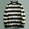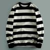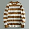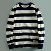 Heavy 280G Double Yarn! European and American Retro Washed Pure Cotton Stripe Long sleeve Loose round Neck Casual Bottoming Shirt Hoodie