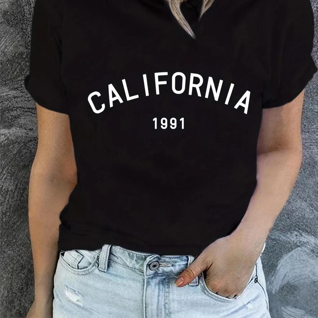 California Print T-Shirt Summer Short Sleeve Causal Top Women's Clothing Aesthetic Clothes
