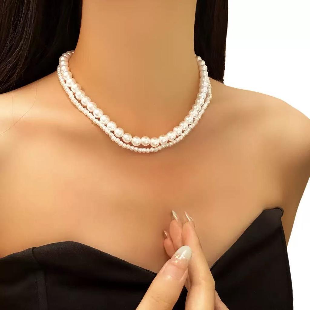 Podwójny naszyjnik z koralików elegancki łańcuszek na szyję łańcuszek na obojczyk perłowy lekki luksusowy łańcuszek