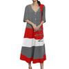 Women's Fashionable V-neck Short Sleeved Button Casual Printed Long Dress