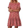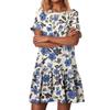 Damska Moda Casual Okrągły Dekolt Krótki Rękaw Falbanki Sukienki w Stylu Vintage z Nadrukiem