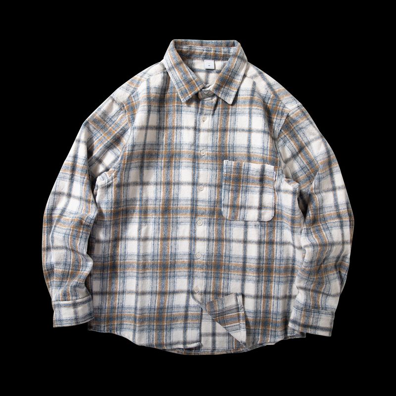 Men's Heavy-Duty Thickened Autumn Woolen Plaid Shirt, Simple Japanese Retro Loose Casual Jacket