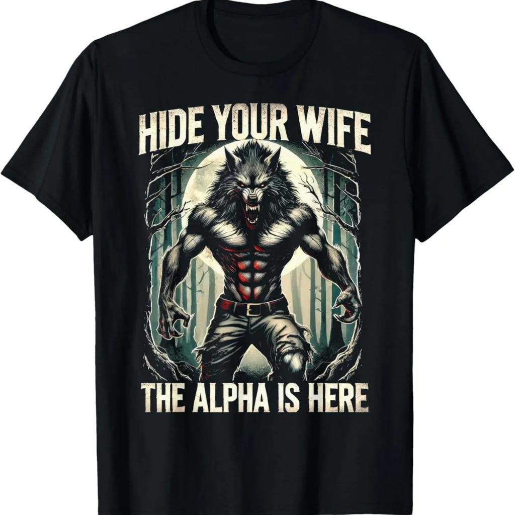 Funny Graphic Tee Hide Your Wife The Alpha Is Here Wolf Meme T-Shirt