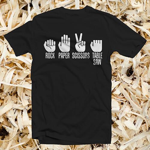 Kamień Papier Nożyce Piła Stołowa BAWEŁNIANA KOSZULKA DIY Koszmar Kontuzja Obróbka Drewna Koszulka Unisex