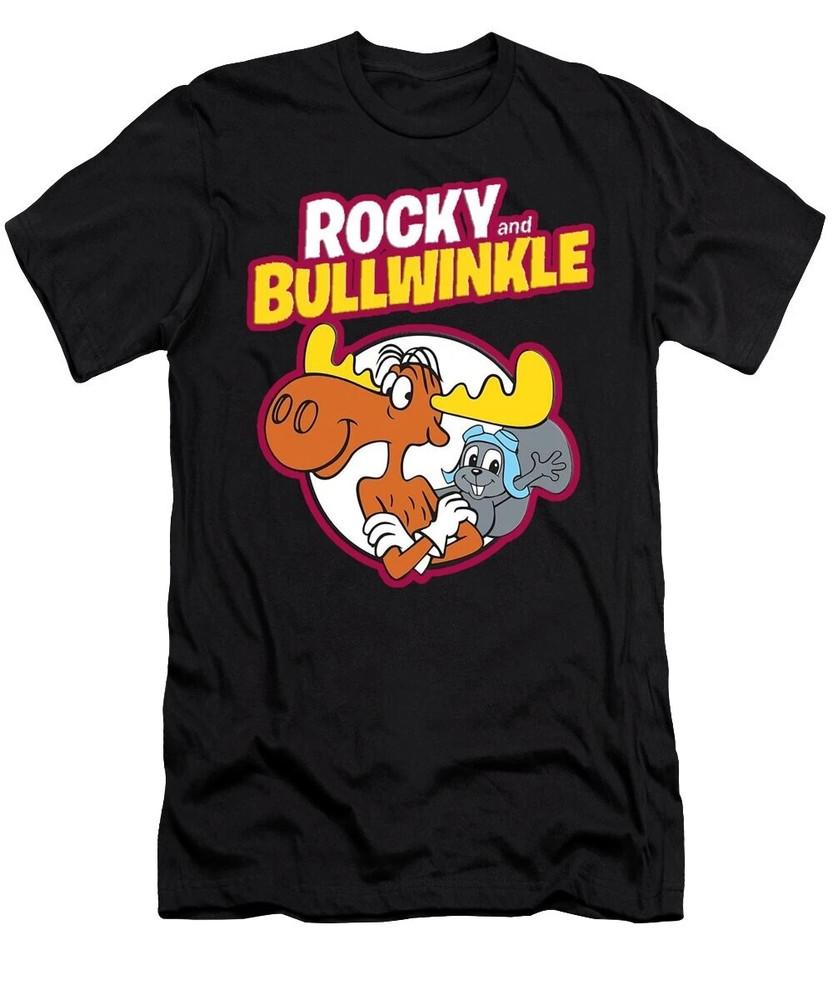 Rocky And Bullwinkle Greetin Black Cotton Full Size S-5XL Unisex T-Shirt