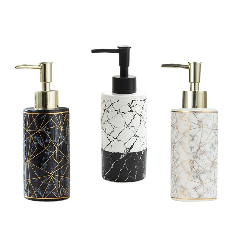Elevates your bathroom aesthetics with our 300ml Marble Lotion Soap Dispenser, crafted from high quality ceramics for a luxurious and long service addition to any space.