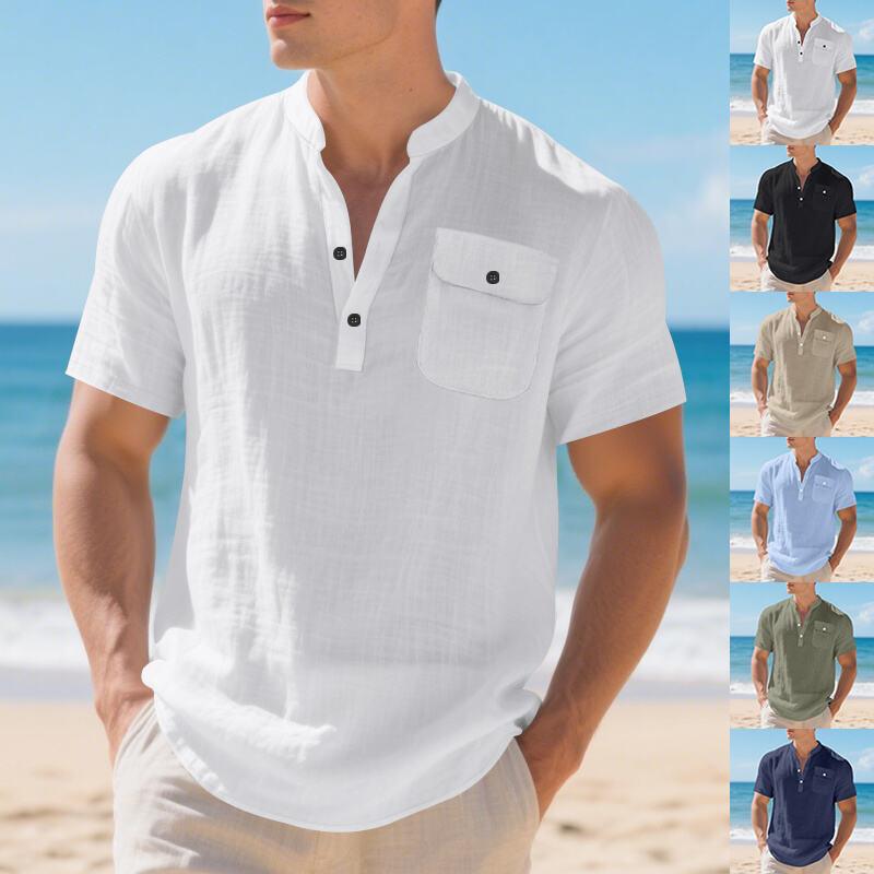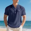 Linen Men's T-Shirt Loose-Fit Casual Workwear Commuter Menswear Short-Sleeved Henley Pocket Shirt