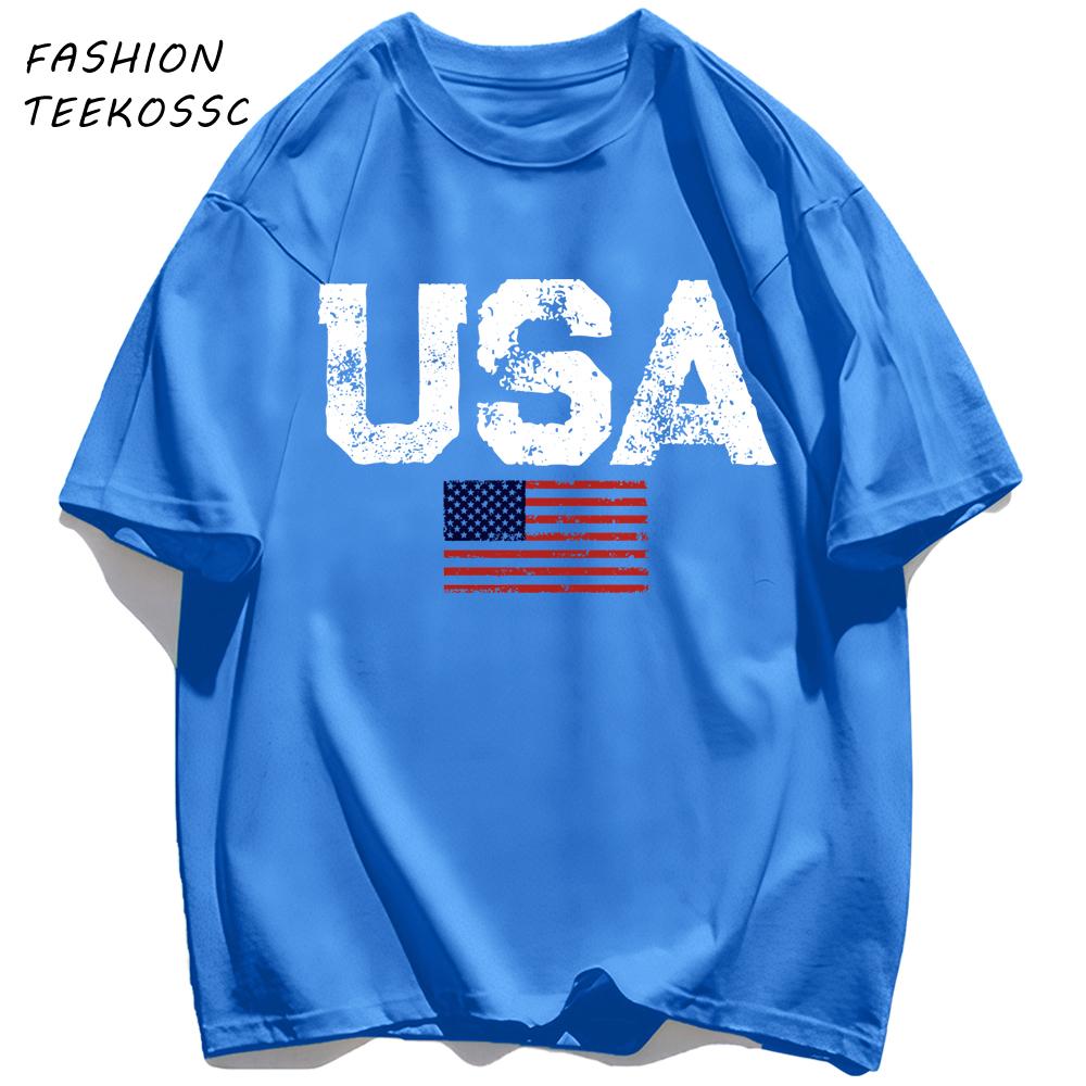Usa Letter American Flag Printing TShirt Men Cotton Crewneck T Shirts Summer Loose Clothes Multicolor Trendy Short Sleeve
