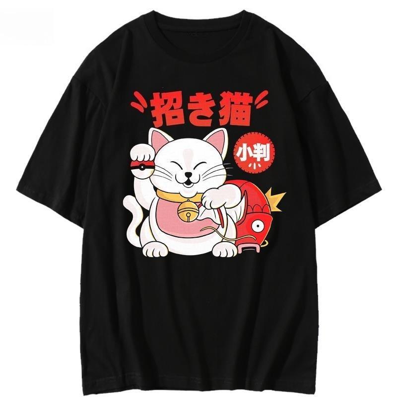 Pokémon Fortune Cat Magikarp Tshirt Cotton Tee Mens 2026 Summer Fashion Oversize Street Casual Y2K Tops Streetwear Clothing