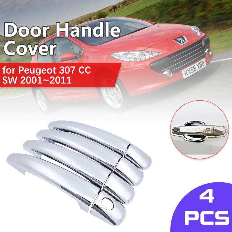 Car Chrome Door Handle Cover Chrome Door Handle Cover for Peugeot 307 CC SW 2001~2011 Key Trim Catch Car Cap Sticker Accessories