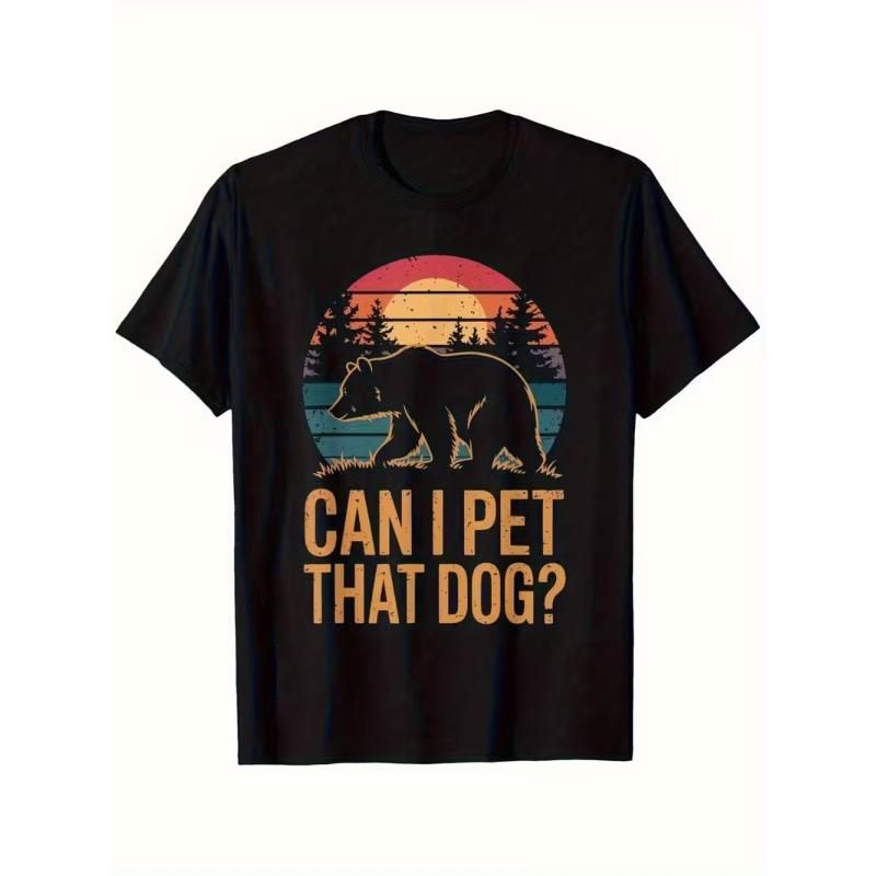 Funny Can I Pet That Dog Vintage Mens Tshirt Streetwear Cotton Harajuku Tee Women Sleeve Oversized Tops Unisex Allseason
