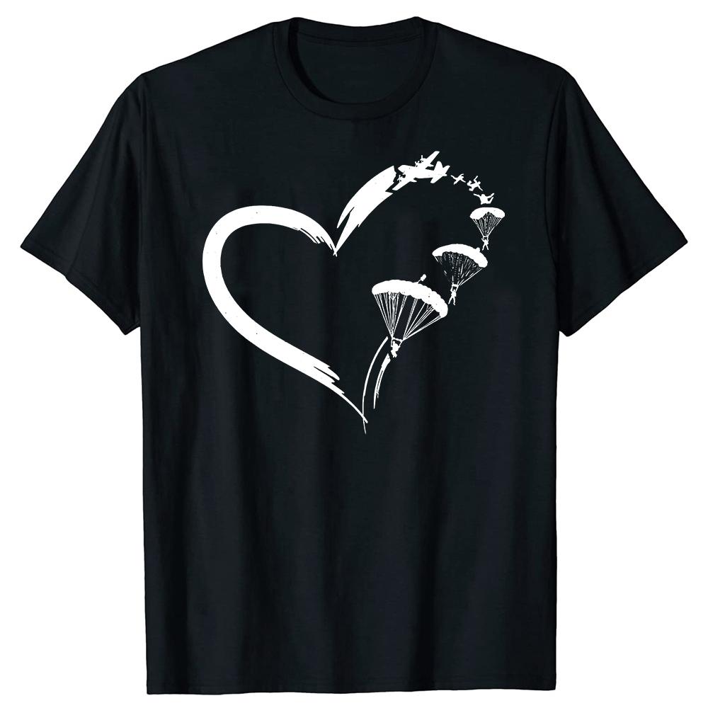 Funny Parachute Paraglide Heart TShirt Summer Men Clothing Fashion T Shirts Cotton Short Sleeve Oversized Loose Tshirt Tops