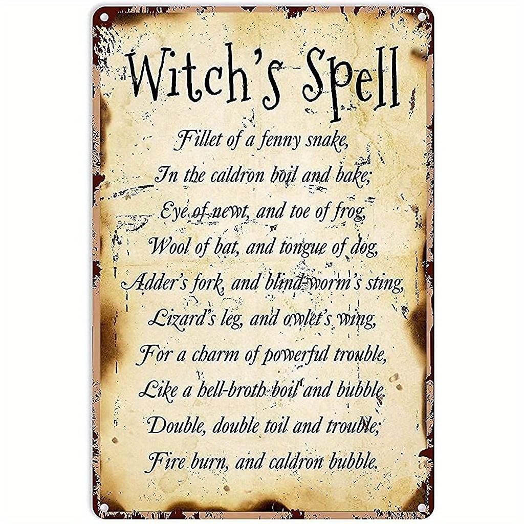 Krouterebs Witchs Spell Metal Tin Sign Vintage Gothic Witchcraft Decor Poster with Antique Look HeavyDuty Iron Wall Art fo