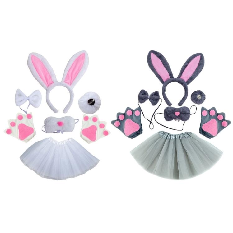 Uroczy zestaw kostiumu królika, te akcesoria do kostiumu królika są świetne na imprezę przebierańców, Halloween, Boże Narodzenie, imprezę urodzinową tematyczną, występy szkolne, cosplay i nie tylko, nadadzą Twojemu dziecku uroczy i atrakcyjny wygląd.